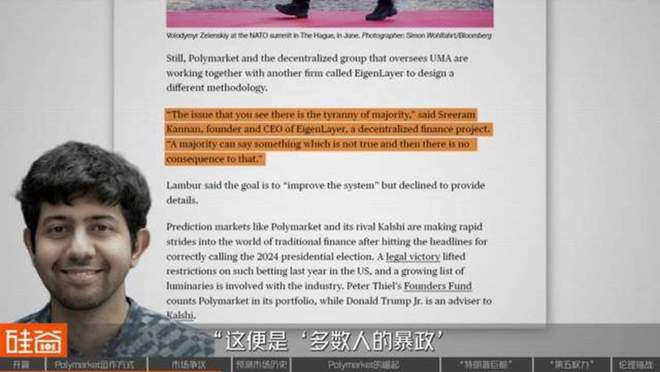 所以针对Polymarket的UMA机制,EigenLayer的创始人SreeramKannan,就曾经对彭博表示:“这便是‘多数人的暴政’,多数人可以说一些不真实的话,而不会有任何后果。”他的观点,其实暴露了Polymarket在追求去中心化的同时,其事实裁决机制存在脆弱性。